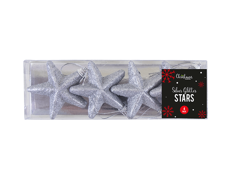 Silberner Stern zum Aufhängen, 4 Stück, 7 cm