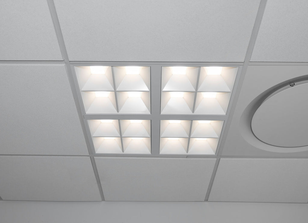 Det kompakte 60x60 cm design gør armaturet ideelt til nedhængte lofter, hvor det integreres diskret i moderne kontorindretninger. Monteringen er enkel takket være et intuitivt installationssystem.