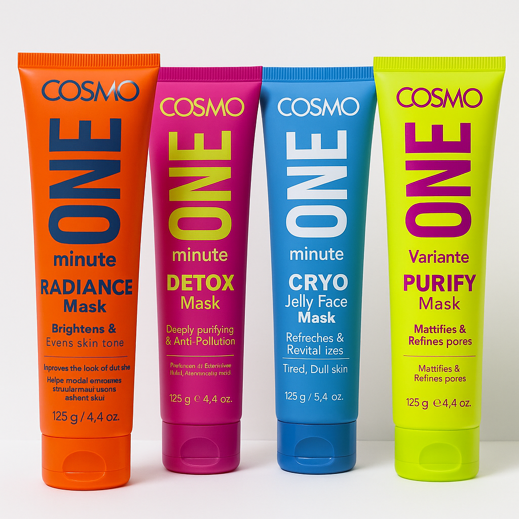 COSMO ONE Minute ansigtsmasker er skabt til den moderne hverdag, hvor hurtige, synlige resultater er et must. De effektive formler aktiveres straks ved påføring og arbejder intensivt for at rense, forfine og genopfriske huden – på bare 60 sekunder.